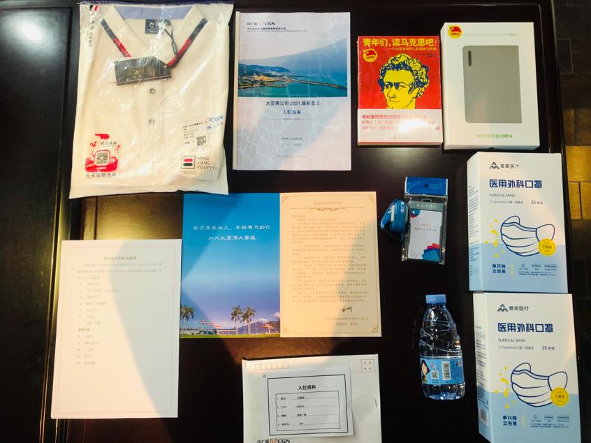 此次為加速新員工更好地融入公司氛圍,提升歸屬感,有良好的入職體驗,讓新生代們倍感關懷,人力資源部為新員工精心準備了“入職大禮包”,包括有蔣董事長寄語新員工的歡迎賀卡、灣里的一卡通、核電站國密卡、宿舍鑰匙、生活區(qū)地圖、文化衫等,還有公司團委助力新員工學習培訓所需的筆記本與書籍等物品。